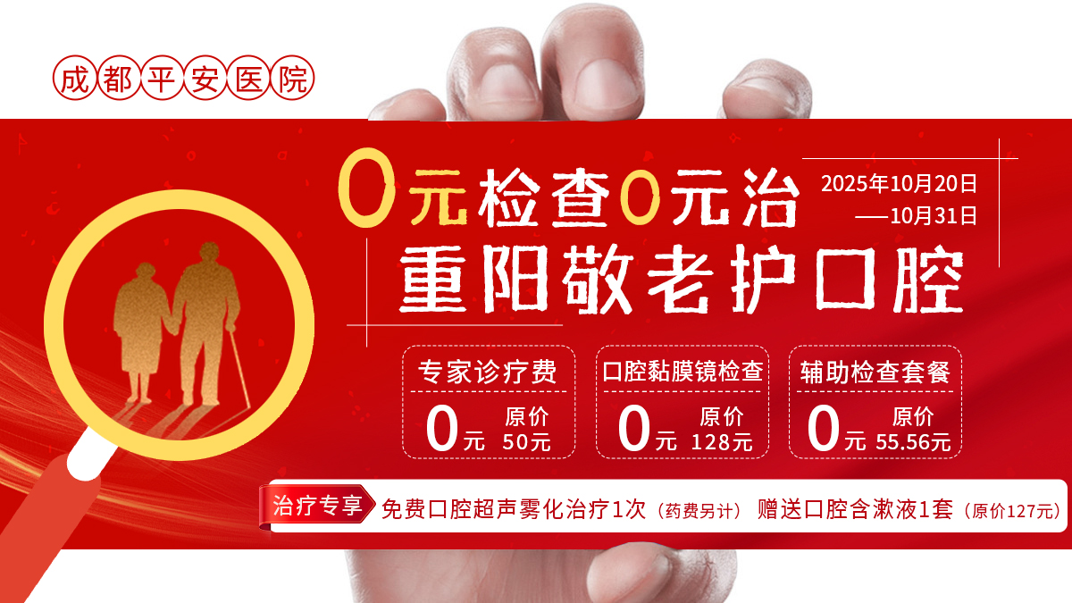 在2025年重阳敬老月来临之际,成都平安医院口腔黏膜科积极响应健康中国,特于2025年10月20日至10月31日,推出 “0元检查0元治 重阳敬老护口腔”专项公益活动,旨在传递爱老、敬老的传统美德,守护中老年人群的口腔健康。