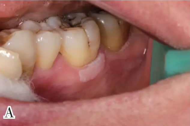 口腔白斑,又称口腔黏膜白斑病,是指发生在口腔黏膜上的白色或灰白色病损,可呈斑块状,或表面粗糙呈皱纹纸状,或表面稍突起呈颗粒状,出现增生时可高于黏膜表面呈刺状、绒毛状,形成糜烂和溃疡时也可稍凹于黏膜表面,大多边界清楚,触之质软,不能擦去。患者不用过度担心,口腔白斑不是癌,它是一种口腔潜在恶性病变。口腔白斑好发于40岁以上的男性,但近年来,随着社会环境的改变,女性患者出现了增多的趋势。