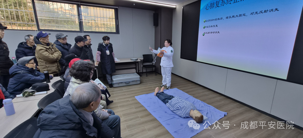 2026年1月27日上午,冬日的暖阳洒满武侯区军队离休退休干部服务中心,成都平安医院(原四川省红十字肿瘤医院)“送健康到军休中心”主题活动在此温情启幕。医院党支部书记郭淑荣带领急诊科骨干护士团队,为在场的离退休干部们带来了一场干货满满的“心肺复苏” 急救培训,用专业知识为老年群体的生命安全筑牢防线。